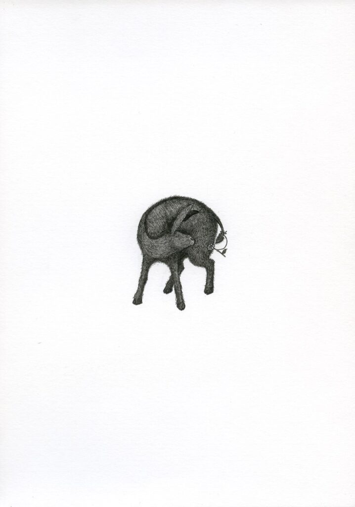 In mostra, troviamo lavori che spaziano da “Orante” a “Granduca della fogna”, passando per “Fiorito” e “Spauracchio”, parte del ciclo “Il culto delle stelle, 2025”. A queste si aggiungono quattro oli su flexoid della serie “Miracolo di San Ulrico” e disegni su carta, tra cui “Senza titolo (Bosco)” del 2020 e “Dolcino Bruciato” del 2023, realizzati con inchiostro e acquerello su carta Fabriano.